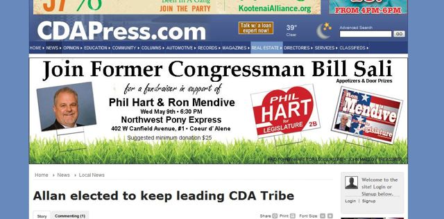 Ad for Hart fundraiser featuring Bill Sali, which appeared on the Coeur d'Alene Press website