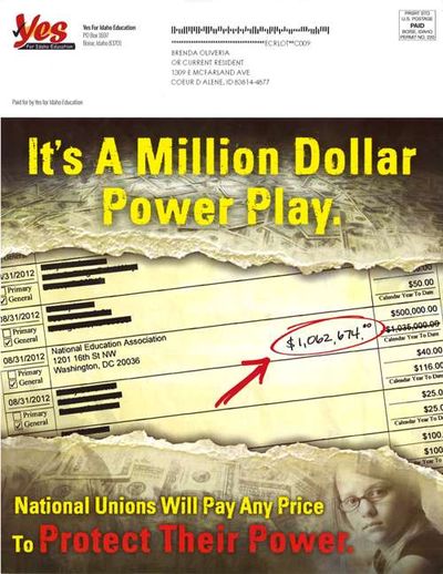 I also received this mailing from Yes for Idaho Education (aka Yes for Breaking the Teachers Union) Wednesday.