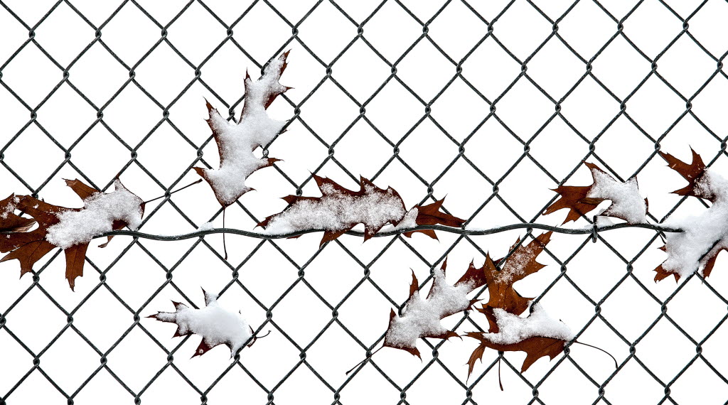 Snow covered leaves line a fence on Atlas Road in Coeur d’Alene on Monday. (SR photo: Kathy Plonka)