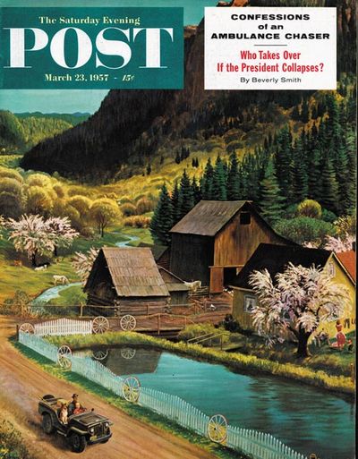 On his Slice blog , Paul Turner posts this front-page drawing from Nov. 26, 1955, by artist was John Clymer, who was born in Ellensberg, Wash.