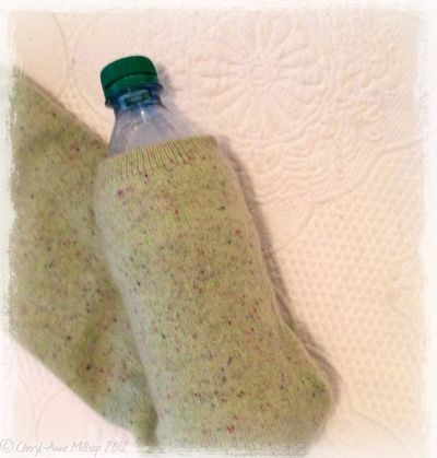 Hotel rooms, especially in Europe, can be chilly in winter. So, to combat cold feet, before going to bed I fill a disposable (and watertight!) plastic water bottle with hot water. As hot as I can get it without actually softening the plastic. Then I slip the bottle into a soft cashmere sock kept in my luggage for exactly that purpose, tuck the homemade hot water bottle under the covers and slip in with it.
