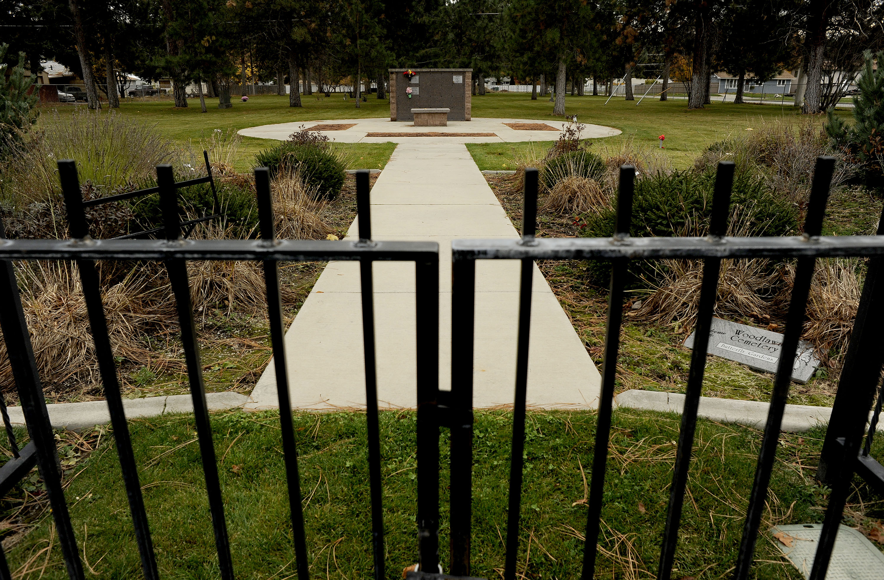 Improvements made to Woodlawn Cemetery in Spokane Valley include a new entry gate and central bench/columbarium. (Kathy Plonka)