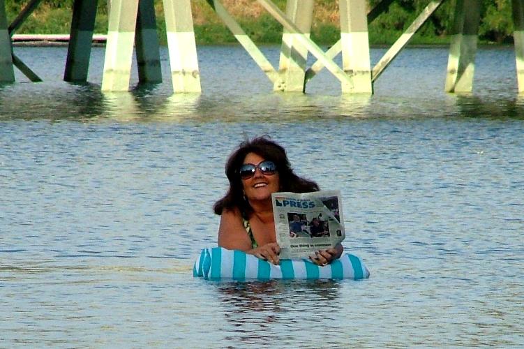 On her Facebook wall, Kerri Thoreson posts: ” I vowed to take a swim on the first day of October and no surprise the Spokane River at Q’emiln Park was quite refreshing. Later this week the overnight temperatures are going to be near the freezing mark so it won’t take long for the river and lake to cool down quickly. Sigh. *for those of you skeptics I’m holding (Monday’s) edition of the Coeur d’Alene Press in this photo.”