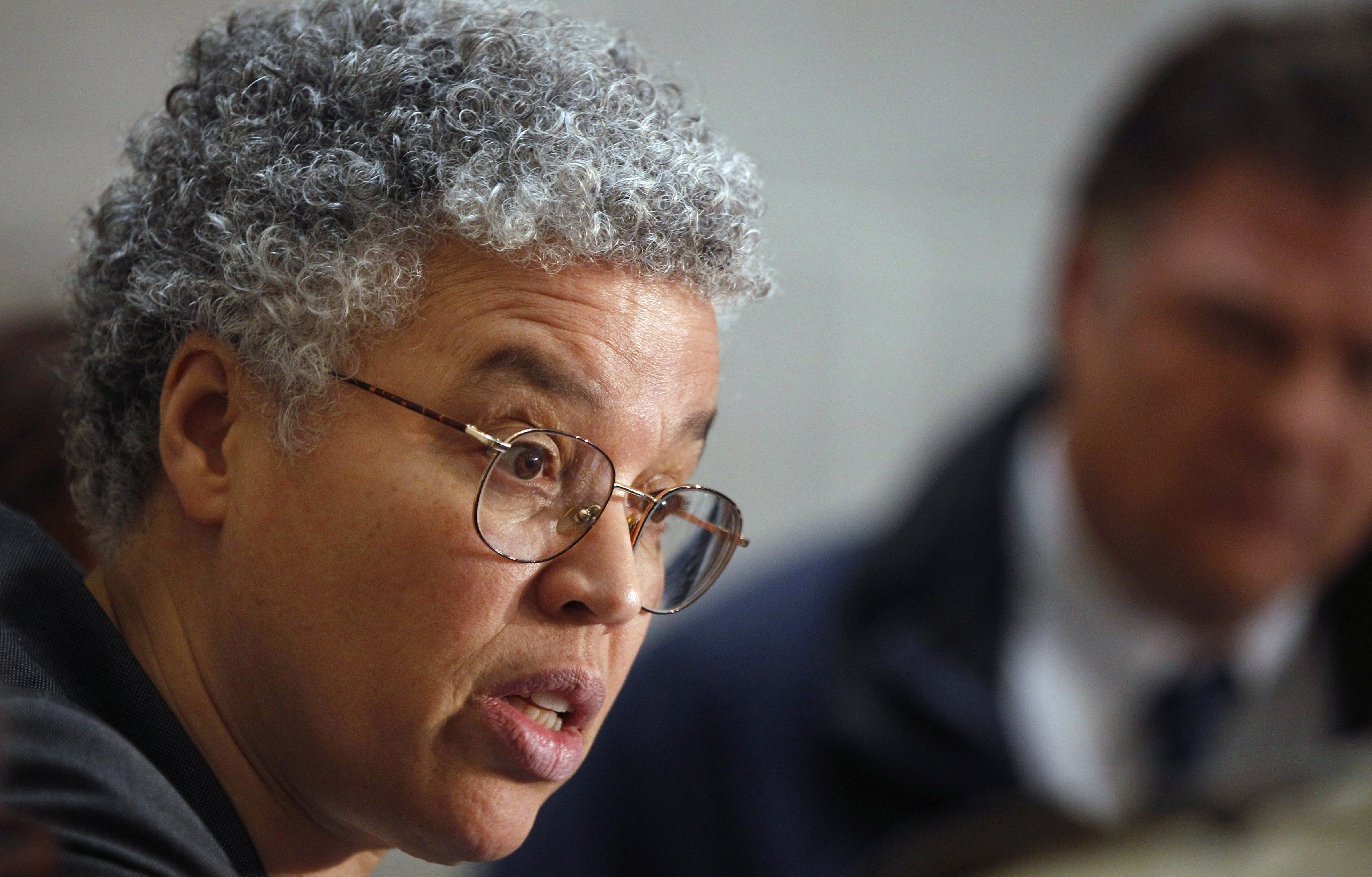 Cook County Board President Toni Preckwinkle speaks at a news conference in January .