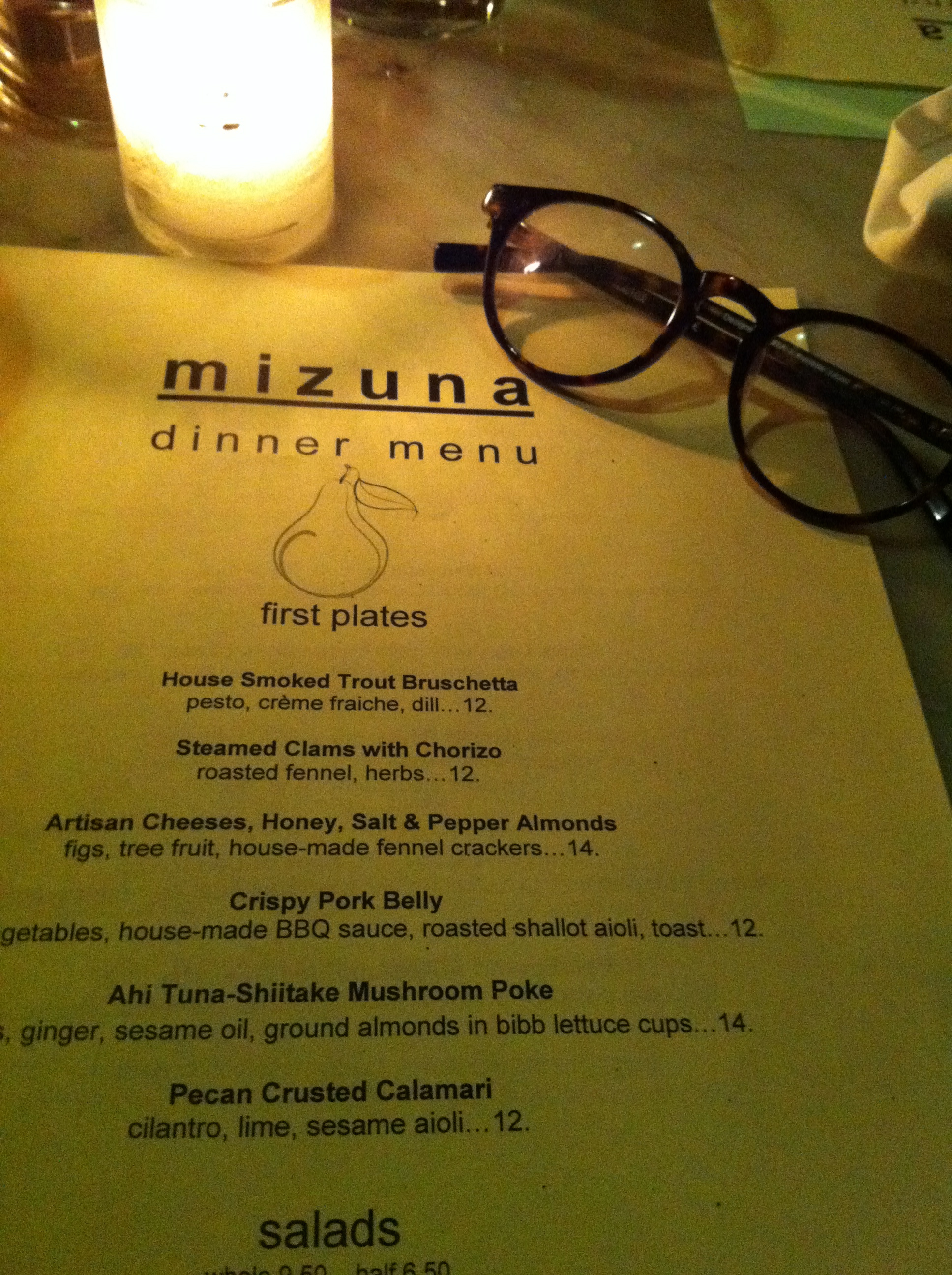 After curling lessons - yeah, you read that right - fell through this evening, what else were we to do on a chilly Sunday evening but go to dinner. So we dropped by Mizuna for a fine meal, washed down with a good pinot. The eatery that began its existence as primarily a vegetarian paradise, and still boasts the best veggie menu in town, is one of Spokane’s culinary treasures.