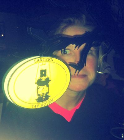 The Lantern Tap House started a Tuesday night running club in September. So far I’ve made it to 3 runs. So far I’ve loved every one. Tonight was a costume run. I forgot. But my friend Stephanie managed to capture this trick shot. See … I’m a running ninja. Or a mustachioed tree sprite? Maybe a pink-cheeked Wooly Willy.
