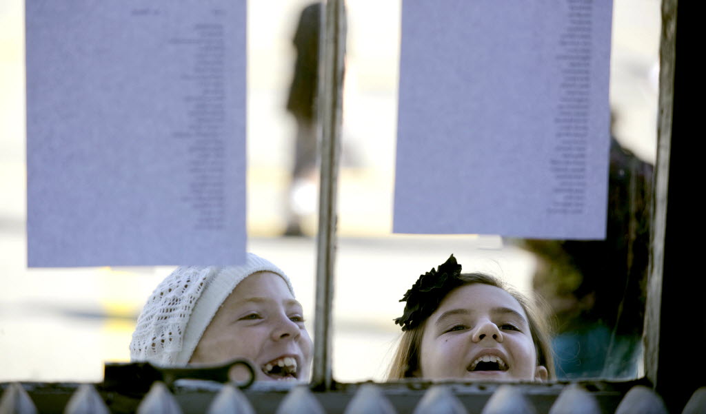 “We’re in the same class,” said Willow Witkowski, left along with fellow 5th grader Abbey Rode as they checked the roster during the first day of school at Winton Elementary in Coeur d’Alene this morning. (SR photo: Kathy Plonka)