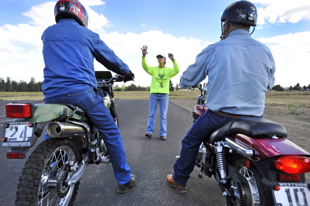 Rider Training instructor, Barb Fincher, works with a pair of students during a basic rider course last week at Westside Motorsports. In August, Washington state turned over motorcycle training and testing responsibilities to private vendors like Westside at 4201 S. Grove Road. Previously, Westside was a training facility but not a test site. In addition, the state is implementing a more stringent test based on findings from the Motorcycle Safety Foundation. Story here . (SR photo: Mike Prager)