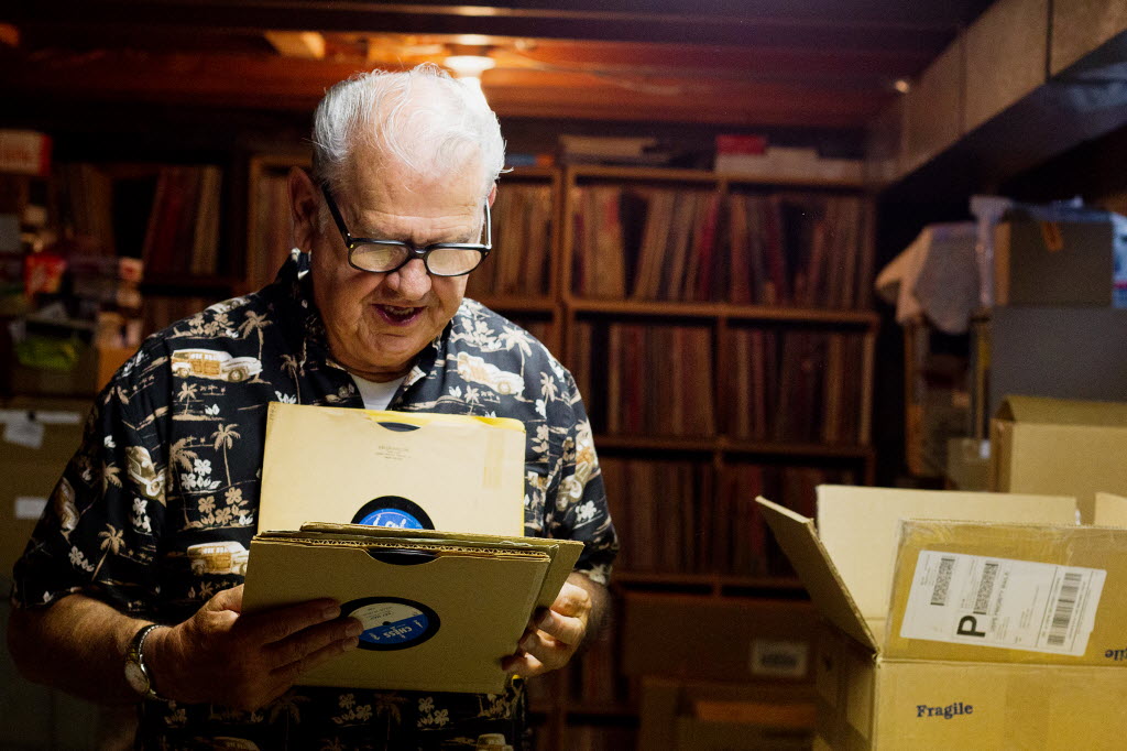 Larry Kmetz thumbs through some of more prized vinyl albums Aug. 29 in the basement of his Coeur d’Alene home. Kmetz, who scours thrift stores for 45s and LPs, owns up to 30,000 records. Story here . (AP Photo/Coeur d’Alene Press, Shawn Gust)