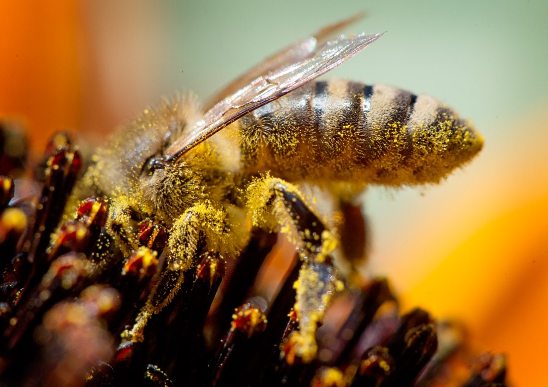 On his Facebook wall, wildlife photographer Robin Loznak posts this photo, which he titles, “Pollen Magnet.” Robin writes: ” A honey bee forages on a sunflower at a park near Roseburg, Ore., this afternoon.”