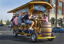 is the Spokane Party Trolley – an environmentally friendly, pedal-powered pub on wheels, complete with keg tap, that relies on its riders for fuel as it travels between stops. “You’ve got to work for your beer on this,” said Nina Kindem, who just launched the business out of the Saranac Building, 17 W. Main Ave. Groups can rent the trolley for two hours or more. Up to five people on each side pump the pedals. There’s room for five others to sit, plus space for a standing host/bartender in the middle. A company-provided pilot perched up front keeps things under control and on schedule/