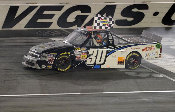 Pole-starter Joey Coulter, who made a bold, three-wide move to briefly lead after the final restart, settled for third after leading a race-high 40 of the 146 laps. Las Vegas native Brendan Gaughan took fourth and Todd Bodine rallied from a first-lap spin to finish fifth.