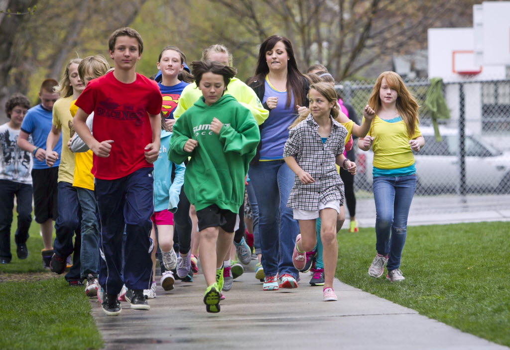 Students at Roosevelt Elementary in Boise run a silent mile in honor of victims of the Boston Marathon bombing Friday. Fifth and sixth grade teacher Stephanie Williams said her students came up with idea on their own after watching events from the bombing during a current events session. “One student asked if they could run a mile in silence to think about the victims,” Williams said. “Every student raised their hand to volunteer, thought that was really neat coming from 12-year-olds.” (AP/Statesman Photo: Darin Oswald)
