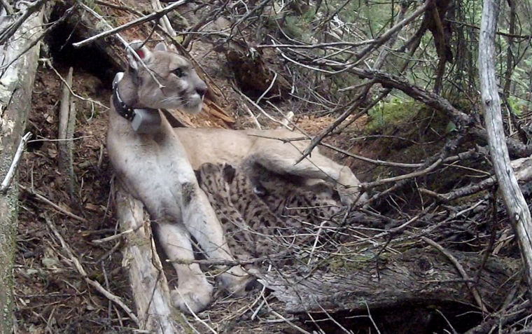 Female mountain lion makes a meal of young wolf in W. Wyoming