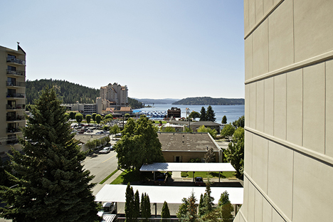 Nancy Ladyman’s view of Lake Coeur d’Alene and Tubbs Hill from her seventh-floor condo will be blocked if a high-rise building at the corner of First Street and Lakeside Avenue is built. Condo owners are suing to stop the project. Story here. (Coeur d’Alene Press photo: Jerome A. Pollos)