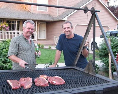 Bent, with the tongs, and Keith enjoy a home barbecue in 2012.