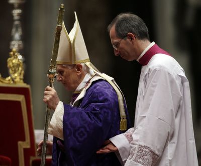 Pope Benedict XVI leaves at the end of the Ash Wednesday mass in St. Peter’s Basilica at the Vatican, Wednesday. Ash Wednesday marks the beginning of Lent, a solemn period of 40 days of prayer and self-denial leading up to Easter. Pope Benedict XVI told thousands of faithful Wednesday that he was resigning for “the good of the church”, an extraordinary scene of a pope explaining himself to his flock that unfolded in his first appearance since dropping the bombshell announcement. Below, Marc Johnson in The Johnson Report discusses the endurance of the Catholic Church. (AP Photo/Gregorio Borgia)