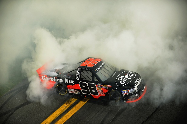 The race’s sixth caution was thrown just after Sauter took the white flag, allowing him to keep Busch at bay and hang on for the race win. Sauter’s trip to Gatorade Victory Lane in the No. 98 Carolina Nut Co./Curb Records Toyota marks his seventh career win in the NASCAR Camping World Truck Series. His previous best finish at Daytona was 17 th place.
