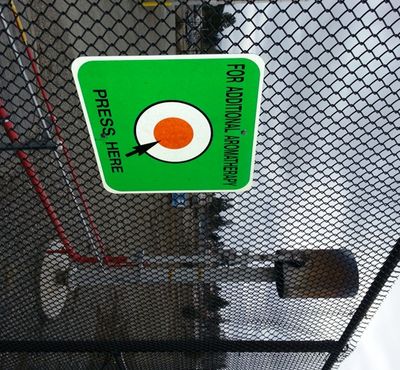 … Operated by folks with a sense of humor. This is the sign on the Spokane River side of the plant, along the extended Centennial Trail. I’ve passed this sign often but never had the nerve to press the button. Councilman Dan Gookin, who provided this photo for Huckleberries Online, didn’t either. So we’ll simply let our imaginations wonder re: what would happen if you wanted a little extra “aromatherapy.”