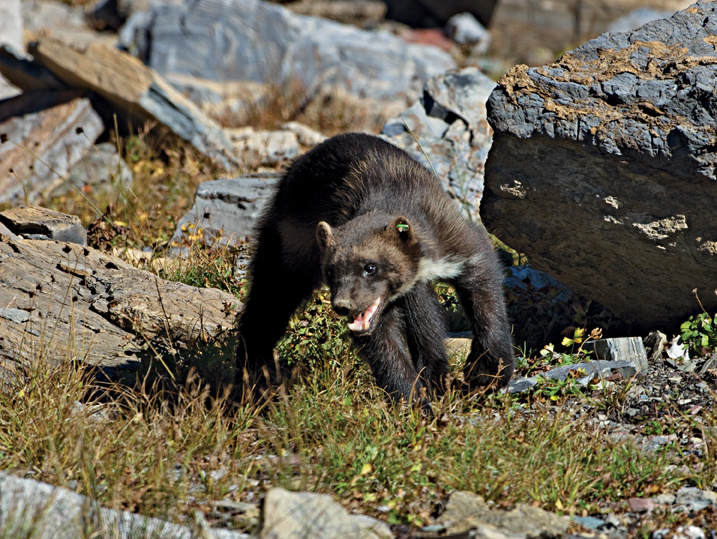 The wolverine, largest member of the weasel family, lives at high elevations, where it relies on deep spring snowpacks to protect its young in reproductive dens. This mother wolverine has been key to research in Glacier National Park. (Photo by Bill Garwood)