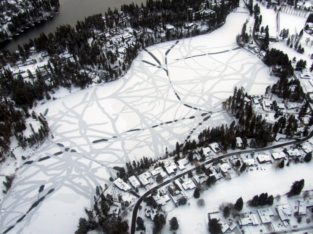 This aerial shows a frozen over Avondale Lake, a small lake near Hayden Lake was photographed by Jesse Tinsley/SR on Saturday, Jan. 5.
