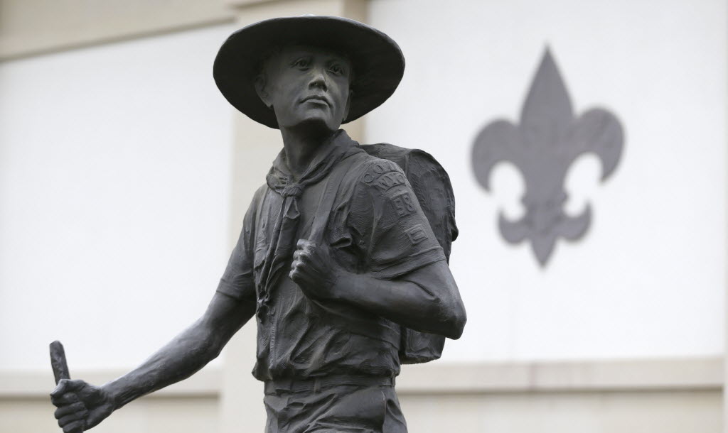 A statue of a Boy Scout stands in front of the National Scouting Museum today in Irving, Texas. The Boy Scouts of America announced it is considering a dramatic retreat from its controversial policy of excluding gays as leaders and youth members. Story here. (AP Photo/LM Otero)