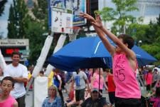 team shirts, I knew we weren’t in boomer-color rules anymore. In my younger years, no teen boy would be caught wearing pink. But everywhere at Hoopfest Saturday, I saw boy teams in electric pink. And fluorescent lime was popular with the boys, too. Perhaps the gender color barriers — blue for boys, pink for girls — are gone for good/