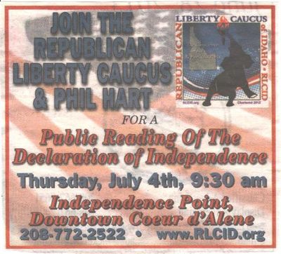 Above, an ad placed in last week’s Nickel’s Worth by Rep. Phil Hart & the Idaho Liberty Caucus.