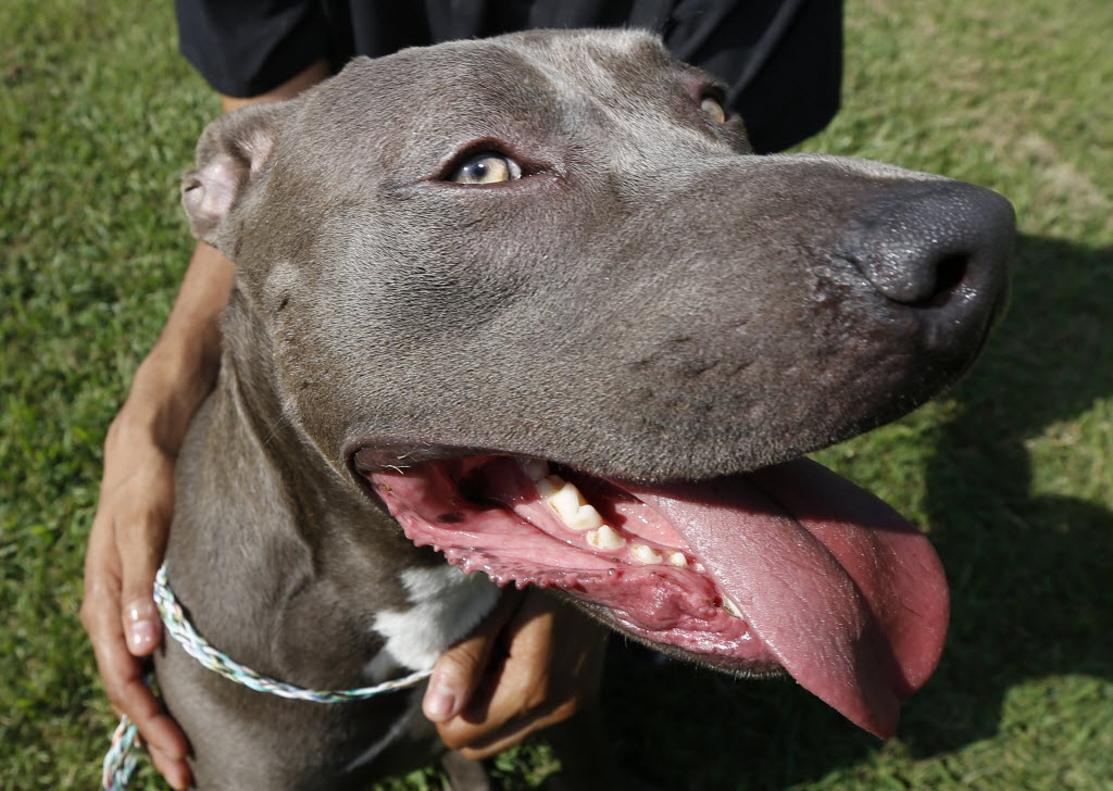 Apollo, a Blue Nose pit bull is shown in Madison, Miss. Apollo’s owner Arthur Young, 21, has filed a federal lawsuit saying the city of Richland’s ban on pit bull dogs is unconstitutional. The city of Richland passed an ordinance in 2006 banning American Pit Bull Terriers, Staffordshire Bull Terriers, American Staffordshire Terriers and mixed-breed offspring. Richland Mayor Mark Scarborough says the ordinance was passed after two pit bull attacks. He says it’s a matter of public safety. (AP Photo/Rogelio V. Solis)