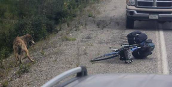 A motorist who helped the Sandpoint cyclist chased by a wolf in the Yukon last weekend offered these photos of the incident. She also offered her account of the incident, including why she felt compelled to give a stranger from Idaho a big hug.