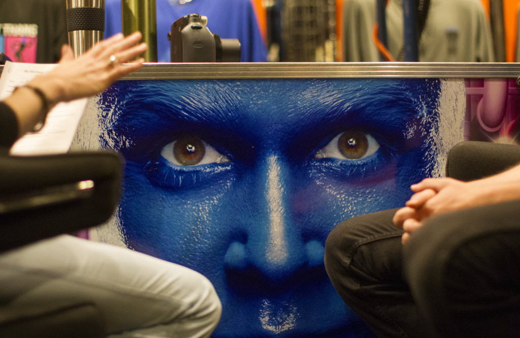 Rachel Schripsema, left, interviews Blue Man Group hopeful Ian McCabe during a casting call at the Briar Street Theatre in Chicago. Blue Man Group, which started with three friends in New York more than two decades ago, has grown from an off-Broadway show to also have productions in Boston, Chicago, Las Vegas and Orlando, Fla. A tour will soon take the blue men to stops in cities like Atlantic City, N.J.; Durham, N.C.; Lincoln, Neb.; Corpus Christi, Texas; Portland, Maine; and Kennewick, Wash. (AP Photo/Scott Eisen)