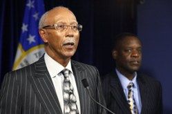 (AP photo: Detroit Mayor Dave Bing, left, at a news conference today)