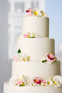 As for finalizing your design, Kossman says today’s couples are forgoing recent fads like topsy-turvy styles and bold color-combos like black and pink, in favor of elegant cakes with organic-looking elements like branches, birds and butterflies, and sophisticated hues like dark purple and greens.