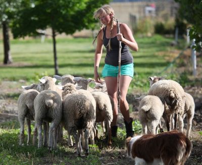 Lindsey Rasmussen, a junior at the University of Idaho, tries her hand at herding sheep at a farm outside Coeur d’Alene. Dog Jack was up to the task but Lindsey and her brother, Ben, a junior at Upper Columbia Academy in Spangle, Wash., got animals clumped up. Duane Rasmussen, who snapped this photo, reports: “I think the brother and sister got more training than the dog.