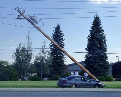 - 5:44 p.m. Vehicle hit Avista power pole @ Kathleen/Schreiber, CdA, knocking out traffic lights @ Ramsey/Kathleen, and maybe n/b lights on H95. Traffic hazard at Ramsey/Kathleen.