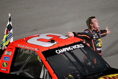 “My car just took off at the end,” Dillon said. “I knew I was faster, so I just really tried not to kill my car, kill my tires, and it finally came to us. I got a good run through (Turns) 1 and 2 and got by him in 3 and 4. It (Dillon’s No. 3 Chevrolet) turned into a rocket ship there at the end.