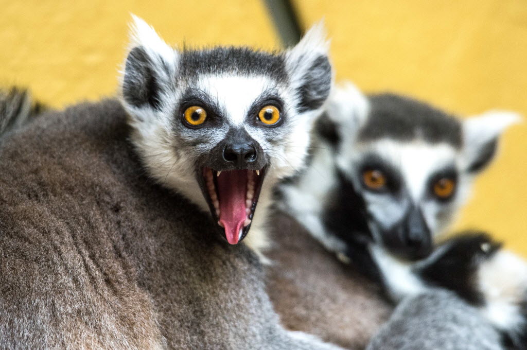 Ring-tailed lemurs sit in their enclosure in the zoo in Straubing, Germany, this morning. You write the cutline. (AP Photo/dpa, Armin Weigel)