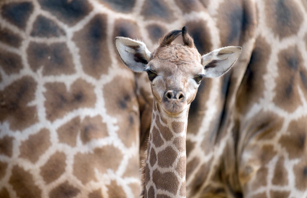 A baby giraffe stahds in front of its mother Gambela at an enclosure of the zoo in Dortmund, Germany, Tuesday. The zoo searches for a godfather or godmother for the new giraffe, who can then pick the name of the animal. The name shall start with a ‘z’: either Zuli, Zikomo or Zebenjo are under consideration. You write the cutline. (AP Photo/dpa, Bernd Thissen)