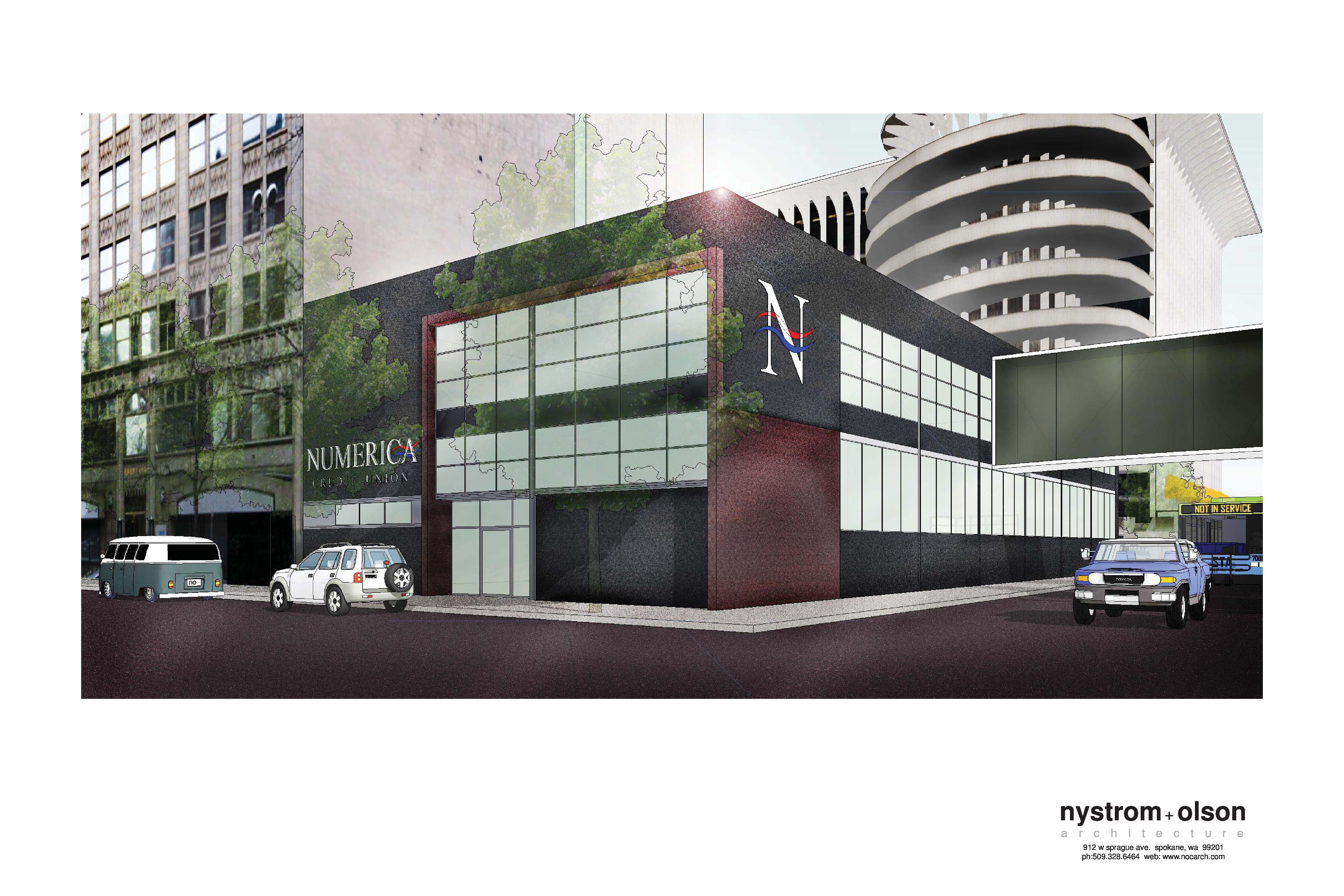 The plan is to rebrand the building as the Numerica Building, and Numerica Credit Union will take most of the main floor. The rendering here, provided by nystrom + olson archiecture, shows the exterior of the building after remodeling.