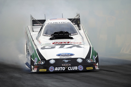 John Force, a 15-time NHRA world champion, claimed the 141st No. 1 qualifying position of his career and his 11th at Heartland Park Topeka by clocking a track record time of 4.043 seconds at 313.22 mph in his Castrol GTX Ford Mustang. He will meet former teammate Tony Pedregon in the opening round of racing.