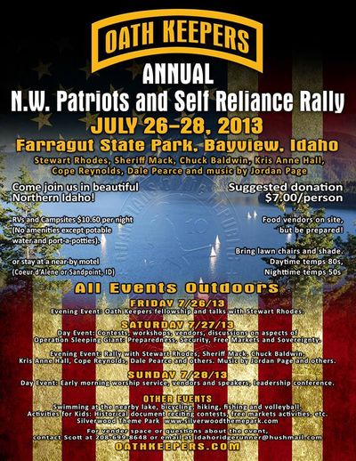 It looks like Sheriff Richard Mack, the Northwest Patriots and others are planning for a major confab in Farragut State Park at the end of July. Dunno who’s organizing this locally.