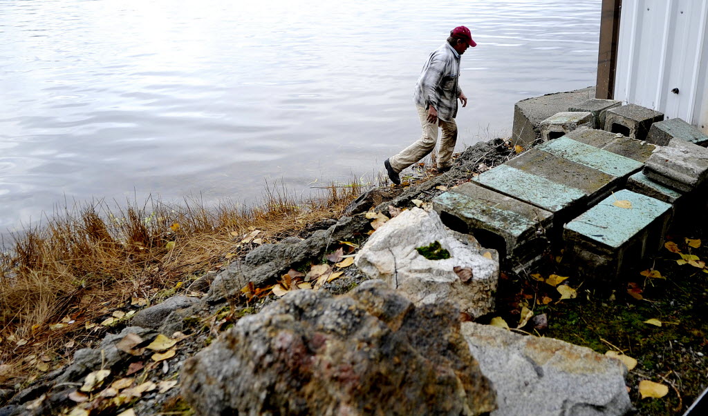 Local handyman Steve Morris of Coeur d’Alene was hired by a Hauser Lake resident to shore up the bank near their home on Monday. (SR photo: Kathy Plonka)