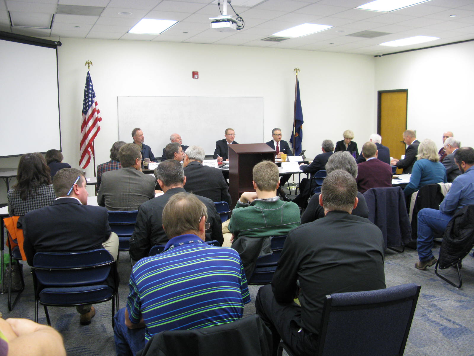 Rick Smith, an attorney with Hawley troxell representing Northwest Pipeline, Century Link, and AT&T, gesturing to the crowded room, said, “Maybe … we can take a count of how many are against it.” But a few minutes later, Commissioner Tom Katsilometes noted, “When Gene made his comment, he was representing 44 assessors.” Amid laughter, Smith said he’d withdraw his suggestion of a count.