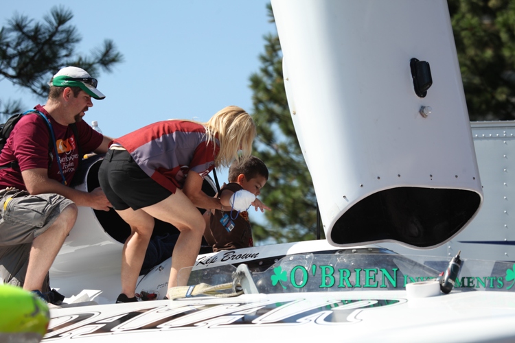 In this Duane Rasmussen photo, a young boy finagles his way into a close look at the cockpit of one of the hydroplanes that raced on Lake Coeur d’Alene Friday through Sunday.