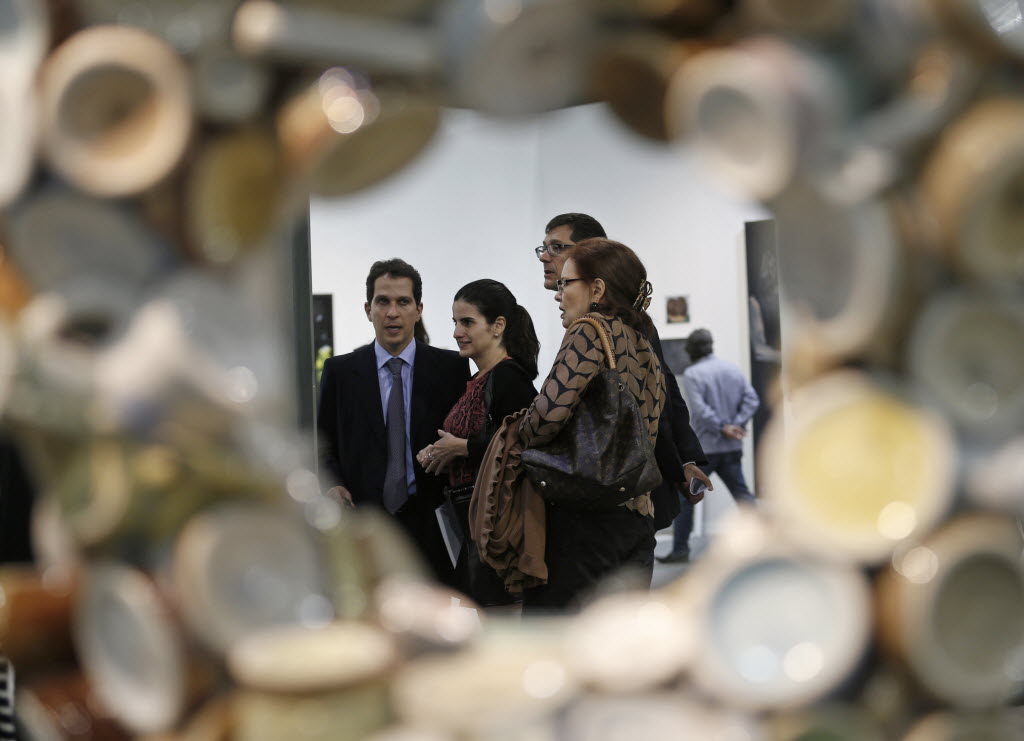 People attend a private viewing of the ART Rio-International Art Fair in Rio de Janeiro, Brazil, today. Over 100 galleries from more than a dozen countries are taking part in the five-day event, which opens on Thursday to the general public. (AP Photo/Silvia Izquierdo)