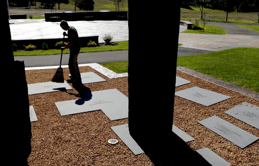 In this SR file photo a Coeur d’Alene Parks Department employee prepares the Fallen Heroes Plaza at Cherry Hill Park for the annual 9/11 ceremony on Friday in Coeur d’Alene. There will be a 9/11 observance at Post Falls City Hall from 8:30-9 o’clock Wednesday and a brief flag ceremony at the Fallen Heroes Plaza in Coeur d’Alene at 9 a.m. See story below. (SR file photo: Kathy Plonka)