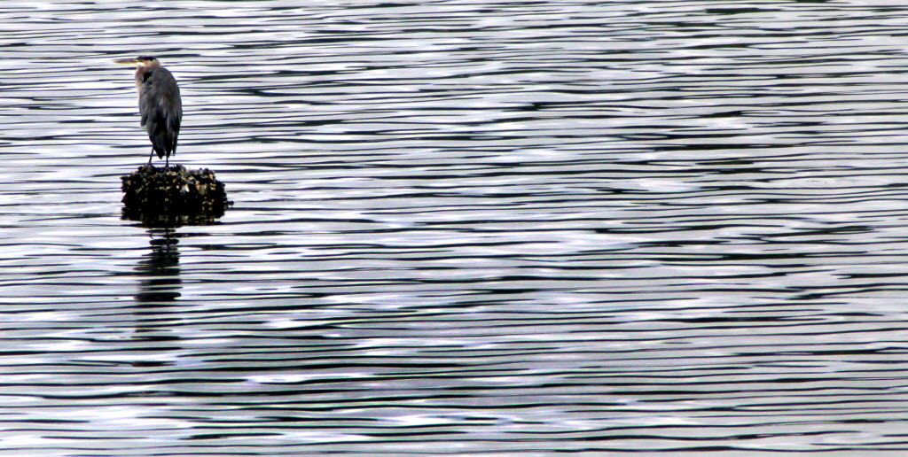 As the Budd Inlet waters calm after a rainy morning today in Olympia,Wash. a Great Blue Heron takes a break as more blustery weather is forecasted for the region later this week. (AP Photo/The Olympian, Steve Bloom)