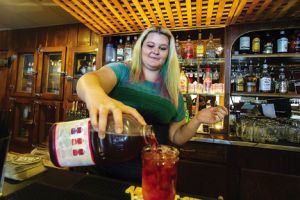 (Gabe Green Press photo: Owner Karenna Mathis pours a drink for a customer Thursday at BlackJack Lil’s restaurant and bar in Hauser Lake)