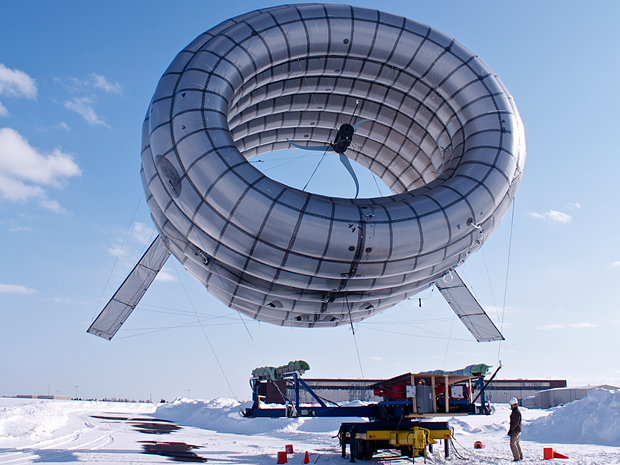 Altaeros’ Buoyant Airborne Turbine (BAT) is an inflatable, helium-filled ring with a wind turbine suspended inside. It will float at a height of 300 meters, where winds tend to be far stronger than they are on the ground. The altitude of the BAT is about double the hub height of the world’s largest wind turbine.
