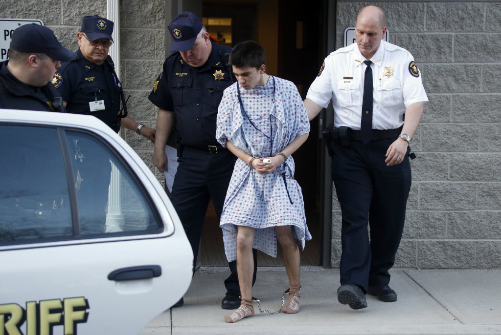 Alex Hribal, the suspect in the stabbings at the Franklin Regional High School near Pittsburgh, is taken from a district magistrate after he was arraigned on charges in the attack on Wednesday. (AP Photo/Keith Srakocic)